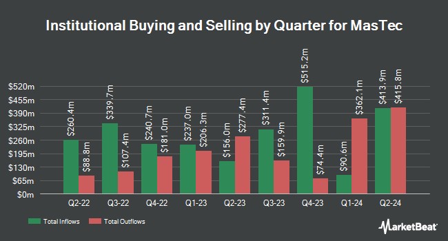 Several other institutional investors and hedge funds have also recently modified their holdings of MTZ. Goldman Sachs Group Inc. boosted its position in shares of MasTec by 163.8% during the first quarter. Goldman Sachs Group Inc. now owns 1,043,981 shares of the construction company's stock valued at $121,843,000 after buying an additional 648,184 shares during the last quarter. Ameriprise Financial Inc. raised its position in MasTec by 171.2% in the 1st quarter. Ameriprise Financial Inc. now owns 390,764 shares of the construction company's stock valued at $45,607,000 after buying an additional 246,666 shares during the last quarter. AQR Capital Management LLC lifted its stake in MasTec by 23.6% during the 1st quarter. AQR Capital Management LLC now owns 963,749 shares of the construction company's stock valued at $106,234,000 after acquiring an additional 184,277 shares in the last quarter. Nuveen LLC purchased a new stake in shares of MasTec in the first quarter valued at about $21,208,000. Finally, Lord Abbett & CO. LLC lifted its position in shares of MasTec by 77.8% during the first quarter. Lord Abbett & CO. LLC now owns 307,419 shares of the construction company's stock valued at $35,879,000 after purchasing an additional 134,493 shares in the last quarter. 78.10% of the stock is owned by hedge funds and other institutional investors.