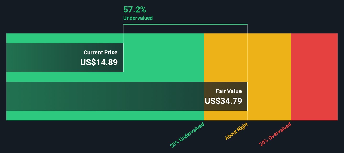 Looking through the lens of our DCF model, Aurinia Pharmaceuticals appears to be trading well below its estimated fair value. The SWS DCF model suggests a fair value of $34.89 per share, which places the current price at a deep discount. Can this big gap persist, or is the market missing something?