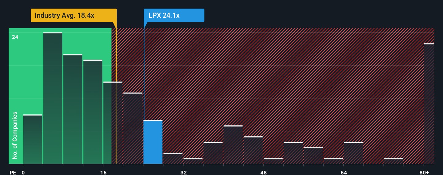A different approach compares Louisiana-Pacific’s share price to earnings, revealing that it trades at 24.1 times earnings, which is higher than the global industry average of 18.7 but lower than its peer average of 58.7. Interestingly, this is a slight discount to the fair ratio of 25.7, hinting the stock may offer some value. Do these metrics signal lingering upside, or could they hide valuation risks if market expectations shift?