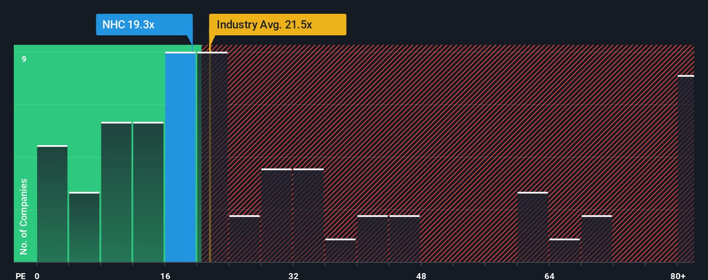 National HealthCare currently trades at a PE ratio of 19.33x. Comparing this to benchmarks, the stock sits above the peer group average of 15.73x but remains below the healthcare industry average of 21.48x. These basic comparisons offer some perspective, but they do not account for unique qualities such as the company’s earnings stability, profit margins, and specific growth outlook.