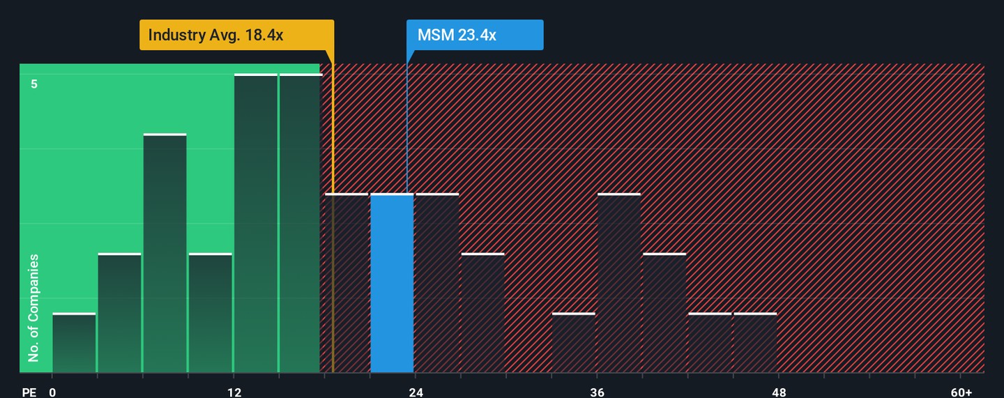 Comparing MSC Industrial Direct’s current PE ratio (23.37x) to its Fair Ratio (20.18x), the stock is trading at a noticeable premium. This suggests the shares may be a bit on the expensive side right now, even after accounting for the company’s growth and risk profile.