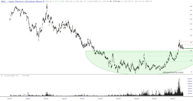 I have finished acquiring my intended mountain of palladium (PALL) shares. My average price is the $125 target that I had hoped for.