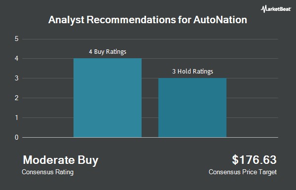 Shares of AutoNation, Inc. (NYSE:AN - Get Free Report) have received an average rating of "Moderate Buy" from the eleven brokerages that are covering the firm, Marketbeat.com reports. Three equities research analysts have rated the stock with a hold recommendation, seven have issued a buy recommendation and one has assigned a strong buy recommendation to the company. The average 12 month target price among brokers that have updated their coverage on the stock in the last year is $236.4444.
