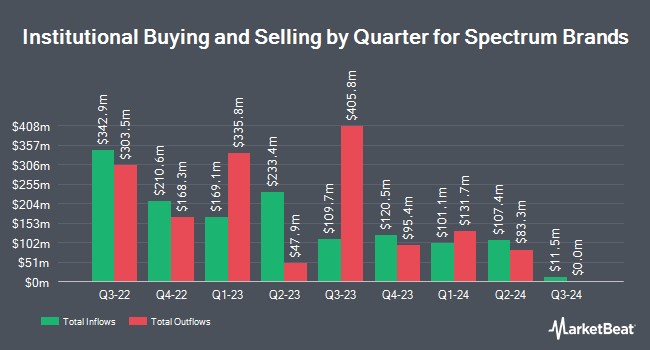 Other hedge funds and other institutional investors have also modified their holdings of the company. GAMMA Investing LLC raised its position in Spectrum Brands by 120.3% in the 2nd quarter. GAMMA Investing LLC now owns 489 shares of the company's stock worth $26,000 after purchasing an additional 267 shares during the last quarter. Blue Trust Inc. raised its position in shares of Spectrum Brands by 44.8% during the second quarter. Blue Trust Inc. now owns 1,060 shares of the company's stock worth $56,000 after acquiring an additional 328 shares during the last quarter. Nisa Investment Advisors LLC lifted its stake in shares of Spectrum Brands by 13.9% during the second quarter. Nisa Investment Advisors LLC now owns 1,767 shares of the company's stock valued at $94,000 after acquiring an additional 215 shares during the period. Quarry LP bought a new position in Spectrum Brands in the first quarter valued at about $157,000. Finally, Amundi acquired a new stake in Spectrum Brands in the first quarter worth about $176,000.