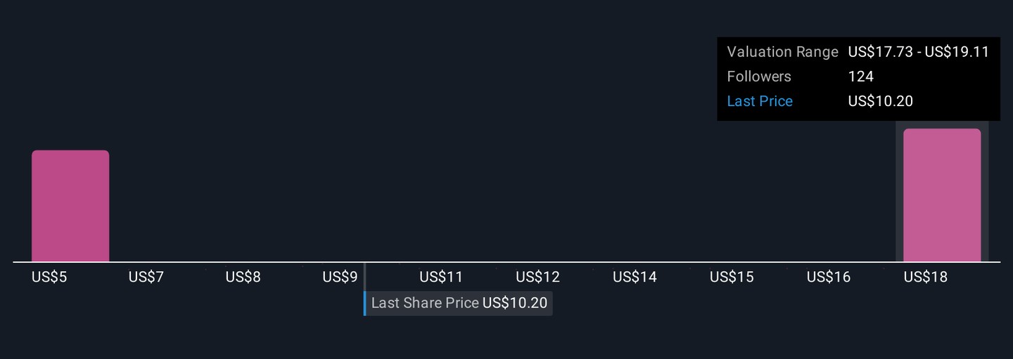 Fifteen fair value estimates from the Simply Wall St Community span a wide range, from US$5.29 to US$22.51 per share. With such varied views, especially in light of AGNC’s ongoing exposure to interest rate risk, you can compare opposing opinions and see how others weigh the potential for both upside and volatility.