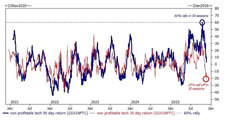 The theme of AI productivity is gaining more attention in client conversations. If companies improve productivity and generate more revenue through the use of AI, this will benefit the non-tech sector of the S&P 500, but it has not yet been reflected in stock prices. If this becomes a reality in the coming years, its value will surpass the normal valuation premium. This remains a focal point of debate Goldman Sachs believes that the sell-off since mid-October has mainly focused on high beta factors and popular themes such as quantum computing, Bitcoin-sensitive stocks, rare earths, and strategic national investments. Many clients view these as future risk appetite indicators, believing that if Bitcoin's performance improves, a year-end rebound may restart