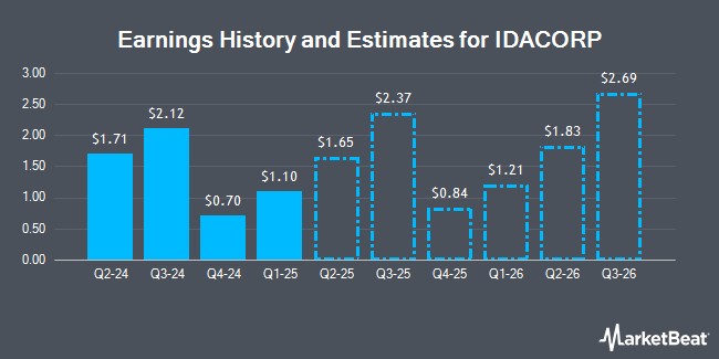 IDACORP, Inc. (NYSE:IDA - Free Report) - Equities research analysts at Zacks Research dropped their Q3 2026 earnings per share estimates for shares of IDACORP in a research report issued on Thursday, November 20th. Zacks Research analyst Team now anticipates that the energy company will post earnings per share of $2.43 for the quarter, down from their prior forecast of $2.49. The consensus estimate for IDACORP's current full-year earnings is $5.81 per share.