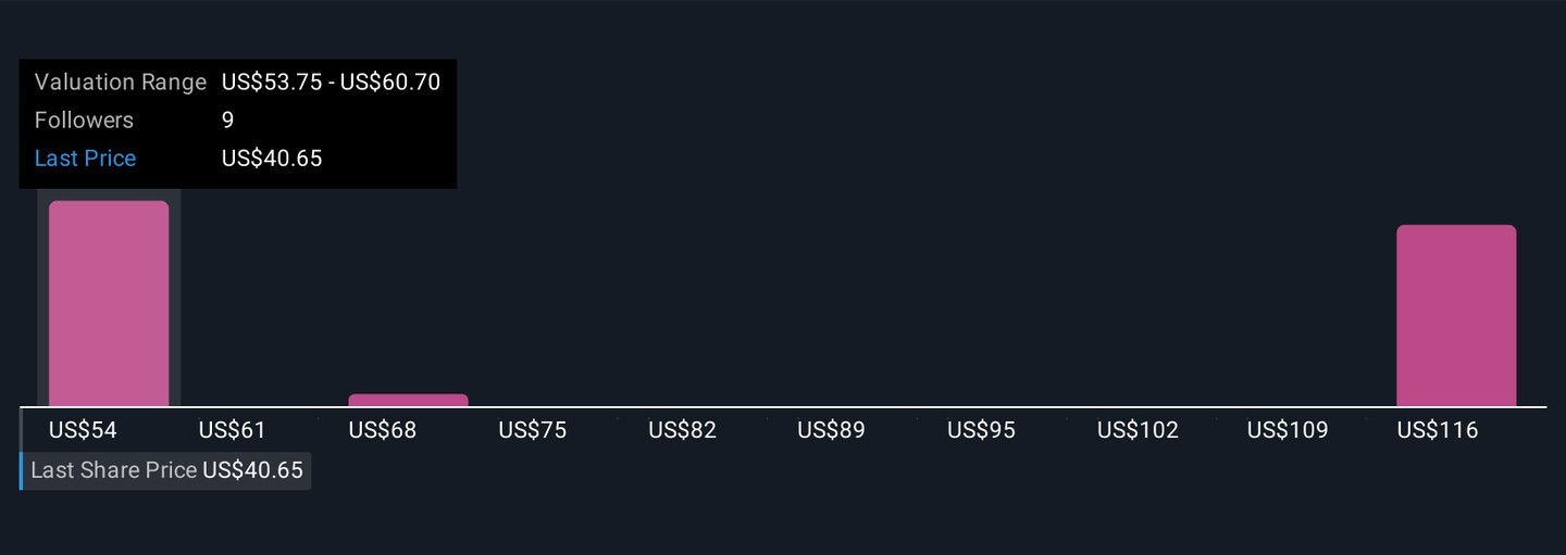 Simply Wall St Community members posted three fair value estimates for Sonoco Products, with optimistic targets stretching from US$53.75 to US$123.93. While these individual views span a wide range, remember ongoing integration and cost-saving targets remain critical to Sonoco’s earnings outlook, explore several viewpoints before deciding where you stand.