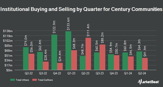 Several other large investors have also recently added to or reduced their stakes in CCS. Penserra Capital Management LLC raised its holdings in shares of Century Communities by 34.9% during the second quarter. Penserra Capital Management LLC now owns 4,565 shares of the construction company's stock worth $257,000 after purchasing an additional 1,180 shares during the period. American Century Companies Inc. boosted its holdings in shares of Century Communities by 9.6% in the 1st quarter. American Century Companies Inc. now owns 63,659 shares of the construction company's stock valued at $4,272,000 after buying an additional 5,600 shares during the period. Wealth Enhancement Advisory Services LLC acquired a new position in shares of Century Communities in the 2nd quarter valued at about $582,000. Universal Beteiligungs und Servicegesellschaft mbH bought a new stake in shares of Century Communities during the 1st quarter valued at about $311,000. Finally, Jump Financial LLC raised its stake in Century Communities by 109.7% during the first quarter. Jump Financial LLC now owns 14,188 shares of the construction company's stock worth $952,000 after acquiring an additional 7,421 shares during the period. 99.54% of the stock is currently owned by institutional investors.