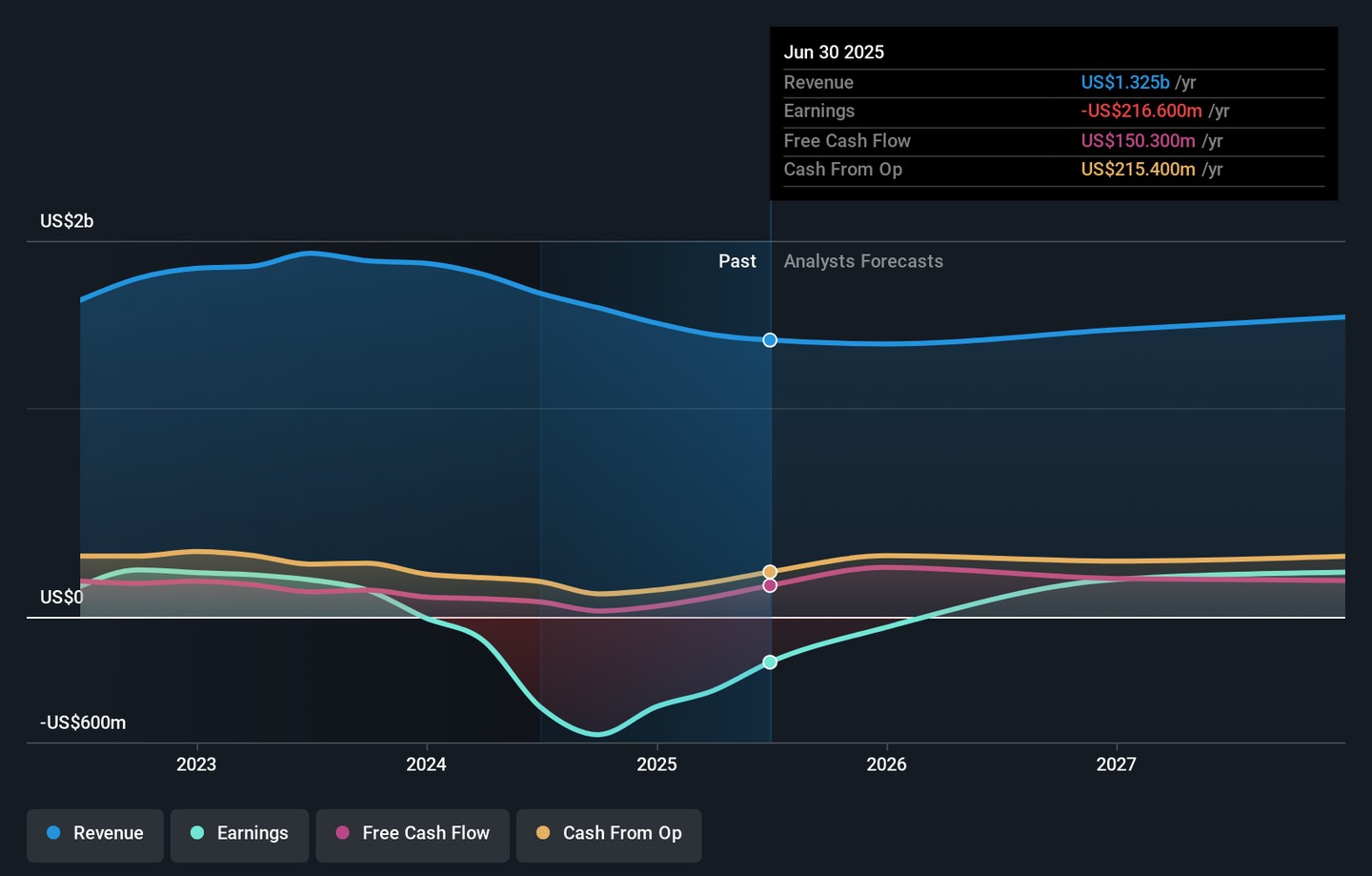 Ingevity's outlook expects $1.5 billion in revenue and $412.8 million in earnings by 2028. This scenario is based on a 3.1% annual revenue growth rate and a $629.4 million increase in earnings from the current level of -$216.6 million.