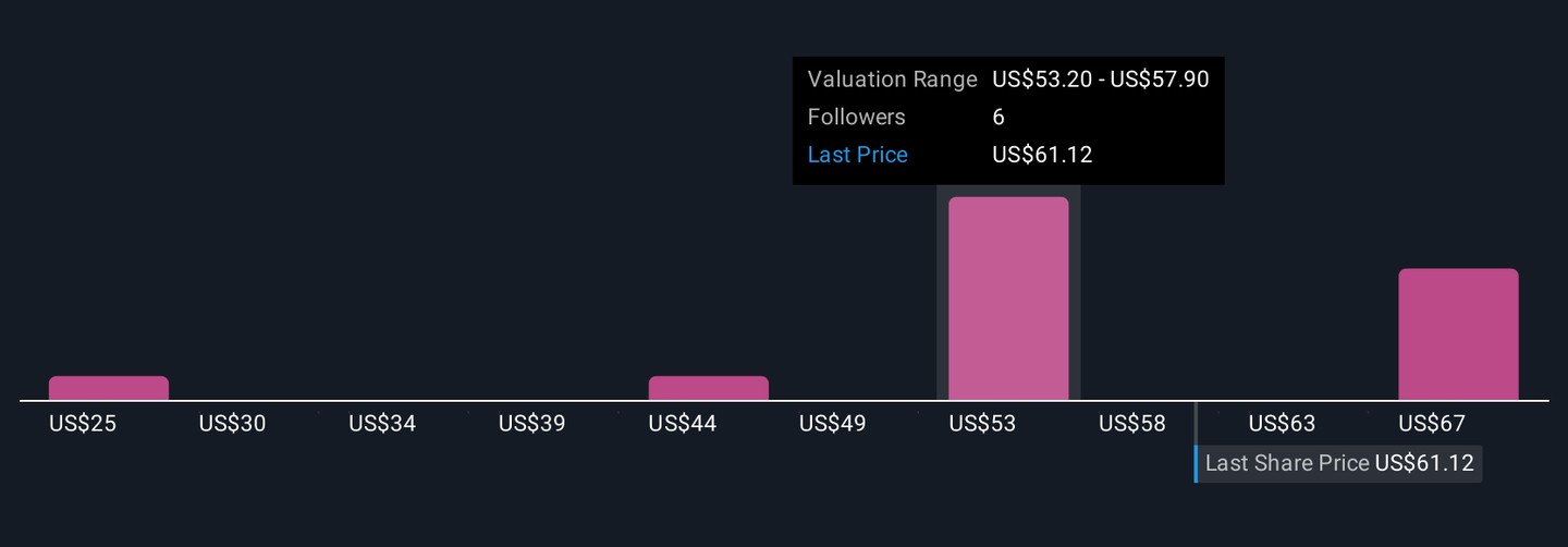 Four private users in the Simply Wall St Community estimate Trex’s fair value between US$25 and US$47.51 per share. With channel partner inventory reductions challenging near-term sales gains, these diverse viewpoints offer readers a window into how much opinions can differ on what Trex is truly worth.