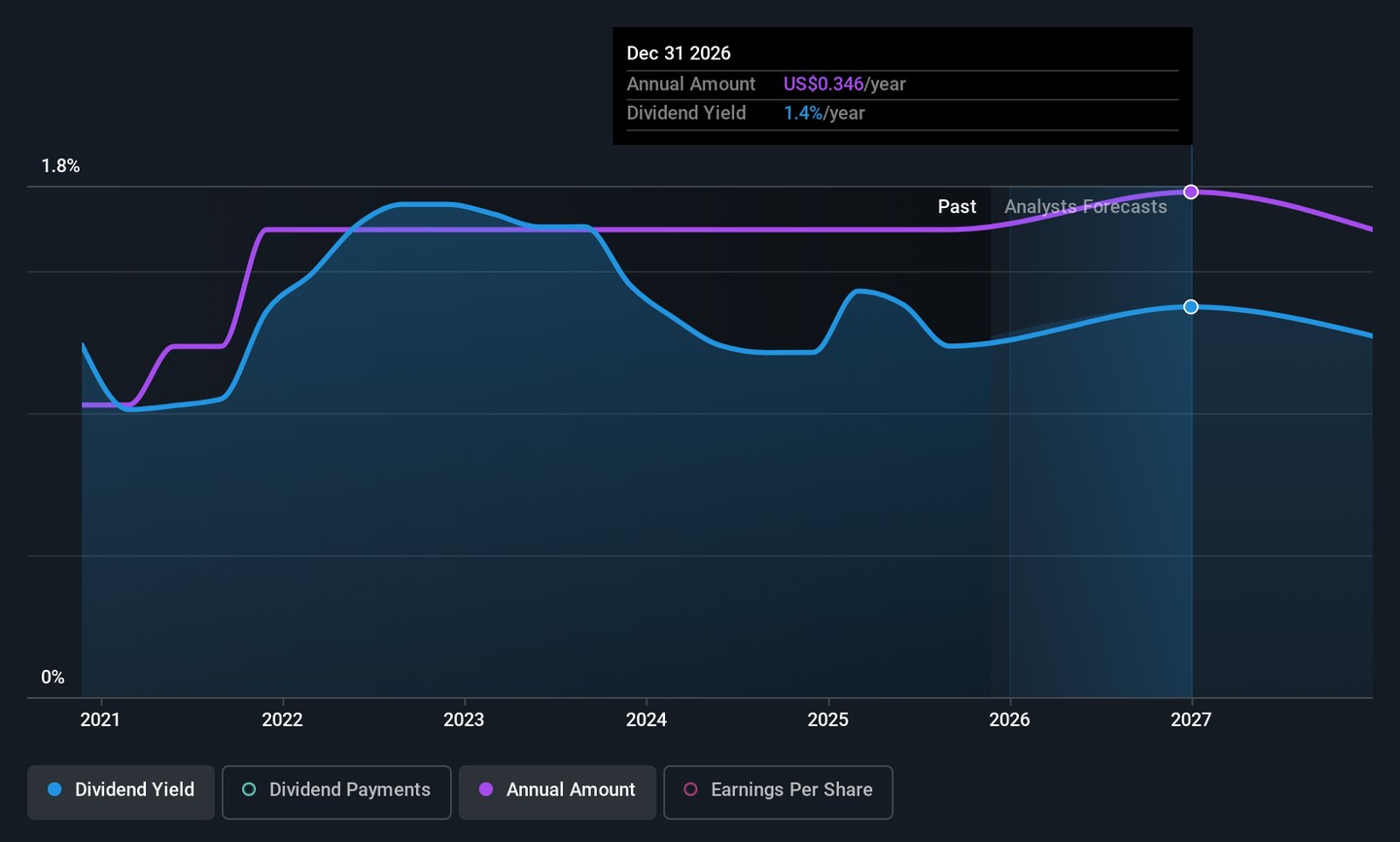 Looking forward, earnings per share is forecast to rise by 72.4% over the next year. If the dividend continues along recent trends, we estimate the payout ratio will be 22%, which is in the range that makes us comfortable with the sustainability of the dividend.
