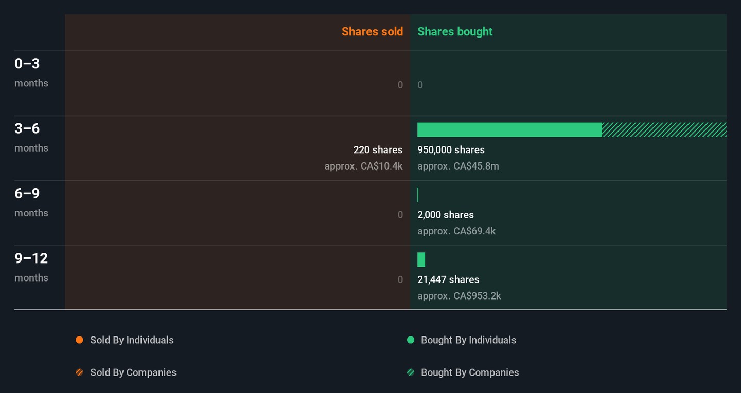 For the purposes of this article, insiders are those individuals who report their transactions to the relevant regulatory body. We currently account for open market transactions and private dispositions of direct interests only, but not derivative transactions or indirect interests.