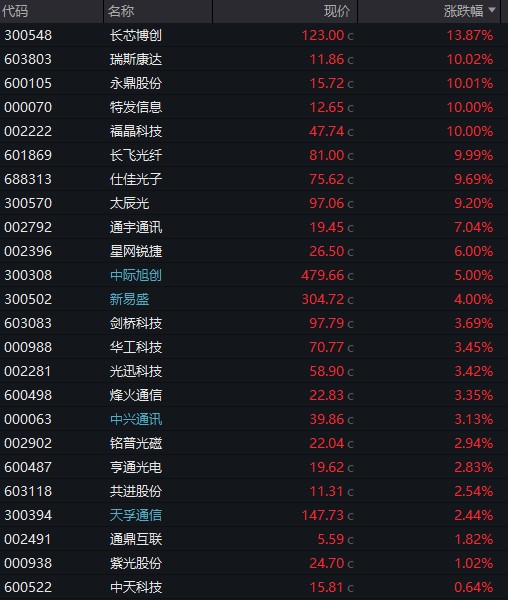 Google's AI large model upgrade ignites the A-share Google chain, and the optical communication sector takes off collectively.