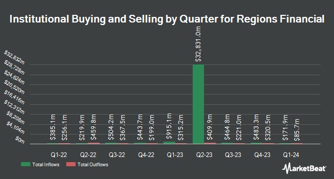 A number of other institutional investors and hedge funds also recently made changes to their positions in the stock. Hardy Reed LLC boosted its holdings in Regions Financial by 1.6% in the second quarter. Hardy Reed LLC now owns 25,747 shares of the bank's stock worth $606,000 after acquiring an additional 404 shares in the last quarter. Greenwood Capital Associates LLC increased its position in shares of Regions Financial by 0.6% during the second quarter. Greenwood Capital Associates LLC now owns 72,400 shares of the bank's stock valued at $1,703,000 after acquiring an additional 427 shares during the last quarter. IFG Advisory LLC boosted its position in Regions Financial by 0.9% in the first quarter. IFG Advisory LLC now owns 52,531 shares of the bank's stock worth $1,142,000 after purchasing an additional 470 shares during the last quarter. Signet Financial Management LLC grew its position in Regions Financial by 4.6% during the second quarter. Signet Financial Management LLC now owns 10,896 shares of the bank's stock valued at $256,000 after buying an additional 483 shares during the period. Finally, Master S Wealth Management Inc. boosted its stake in Regions Financial by 1.2% in the second quarter. Master S Wealth Management Inc. now owns 40,303 shares of the bank's stock valued at $948,000 after acquiring an additional 485 shares during the last quarter. Institutional investors own 79.39% of the company's stock.
