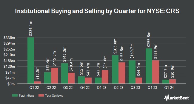 Several other large investors have also modified their holdings of CRS. Prudential Financial Inc. grew its position in shares of Carpenter Technology by 43.3% during the second quarter. Prudential Financial Inc. now owns 56,082 shares of the basic materials company's stock worth $15,500,000 after acquiring an additional 16,954 shares during the last quarter. Bowen Hanes & Co. Inc. acquired a new stake in Carpenter Technology during the 2nd quarter worth $38,693,000. AXQ Capital LP acquired a new stake in Carpenter Technology during the 2nd quarter worth $235,000. Journey Strategic Wealth LLC purchased a new position in Carpenter Technology during the 2nd quarter worth $236,000. Finally, Franklin Resources Inc. increased its stake in Carpenter Technology by 10.9% in the second quarter. Franklin Resources Inc. now owns 393,039 shares of the basic materials company's stock valued at $108,628,000 after purchasing an additional 38,699 shares during the period. 92.03% of the stock is owned by institutional investors and hedge funds.