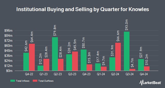 Other institutional investors have also bought and sold shares of the company. Dynamic Technology Lab Private Ltd bought a new stake in shares of Knowles in the 1st quarter worth about $533,000. Hsbc Holdings PLC increased its stake in Knowles by 9.6% during the first quarter. Hsbc Holdings PLC now owns 16,095 shares of the communications equipment provider's stock worth $244,000 after acquiring an additional 1,415 shares during the last quarter. Wealth Enhancement Advisory Services LLC bought a new stake in Knowles during the second quarter worth approximately $278,000. First Hawaiian Bank raised its position in Knowles by 118.1% during the first quarter. First Hawaiian Bank now owns 34,007 shares of the communications equipment provider's stock valued at $517,000 after purchasing an additional 18,415 shares during the period. Finally, Johnson Investment Counsel Inc. lifted its stake in shares of Knowles by 39.7% in the 2nd quarter. Johnson Investment Counsel Inc. now owns 71,984 shares of the communications equipment provider's stock valued at $1,268,000 after purchasing an additional 20,441 shares during the last quarter. Institutional investors own 96.35% of the company's stock.