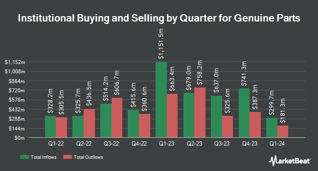 Other institutional investors have also modified their holdings of the company. Laurel Wealth Advisors LLC increased its position in shares of Genuine Parts by 12,031.0% during the second quarter. Laurel Wealth Advisors LLC now owns 185,726 shares of the specialty retailer's stock worth $22,530,000 after acquiring an additional 184,195 shares during the period. Quadcap Wealth Management LLC grew its stake in Genuine Parts by 1.4% during the 2nd quarter. Quadcap Wealth Management LLC now owns 5,578 shares of the specialty retailer's stock worth $677,000 after purchasing an additional 75 shares in the last quarter. CreativeOne Wealth LLC raised its position in Genuine Parts by 10.2% in the 2nd quarter. CreativeOne Wealth LLC now owns 2,287 shares of the specialty retailer's stock valued at $277,000 after purchasing an additional 211 shares in the last quarter. Global Retirement Partners LLC acquired a new stake in Genuine Parts in the 2nd quarter valued at about $1,188,000. Finally, Weik Capital Management boosted its stake in shares of Genuine Parts by 1.2% in the 2nd quarter. Weik Capital Management now owns 9,130 shares of the specialty retailer's stock valued at $1,108,000 after buying an additional 110 shares during the period. Institutional investors and hedge funds own 78.83% of the company's stock.