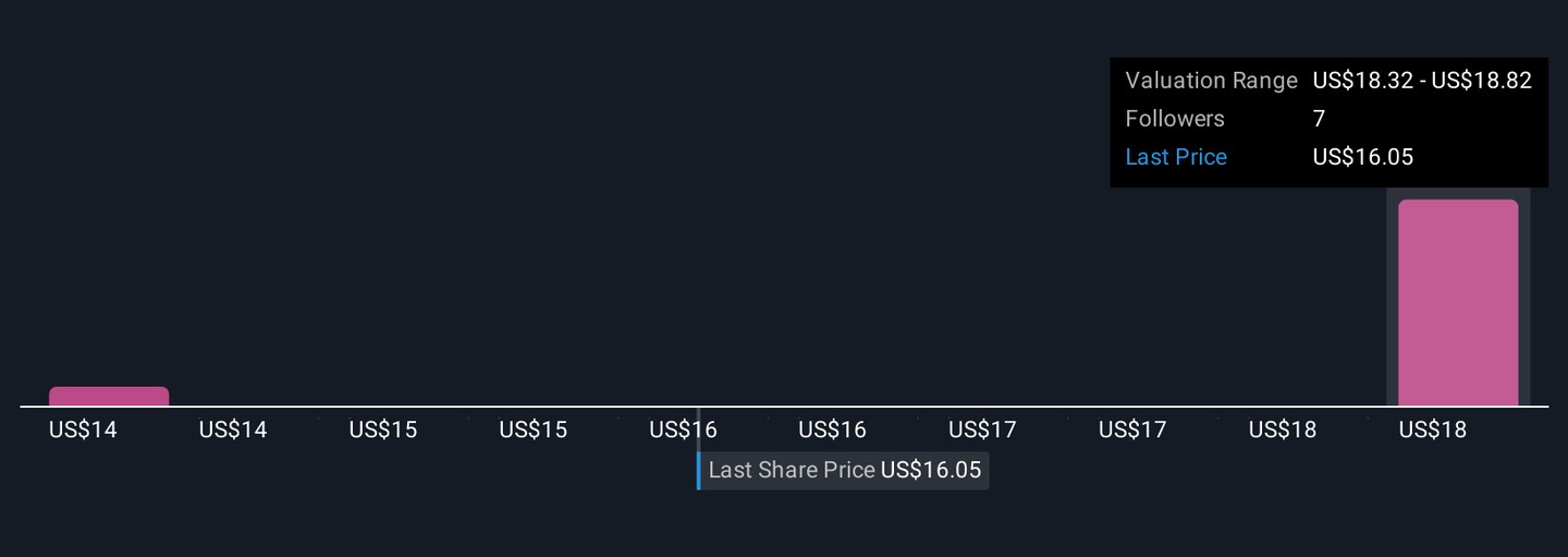 The Simply Wall St Community’s fair value estimates for Banc of California range from US$13.85 to US$20.99 across three individual views. With short-term optimism boosted by potential rate cuts, consider how heavy reliance on Southern California real estate may shape the bank’s story over time and weigh other investors’ views before deciding.