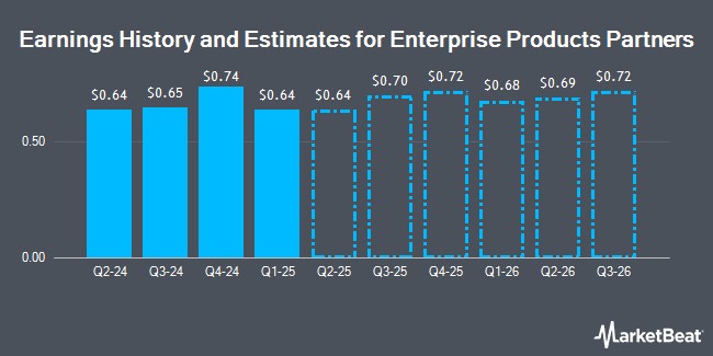 Enterprise Products Partners (NYSE:EPD - Get Free Report) last posted its quarterly earnings data on Wednesday, October 29th. The oil and gas producer reported $0.61 earnings per share (EPS) for the quarter, missing analysts' consensus estimates of $0.68 by ($0.07). Enterprise Products Partners had a return on equity of 19.81% and a net margin of 10.71%.The company had revenue of $12.02 billion for the quarter, compared to the consensus estimate of $11.83 billion. During the same period in the prior year, the firm posted $0.65 earnings per share. The business's revenue was down 12.7% on a year-over-year basis.