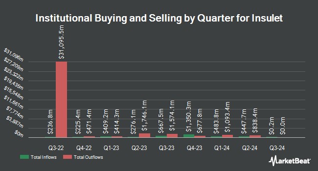 Several other large investors have also recently bought and sold shares of the stock. American Century Companies Inc. boosted its holdings in shares of Insulet by 34.8% during the first quarter. American Century Companies Inc. now owns 1,152,606 shares of the medical instruments supplier's stock worth $302,686,000 after acquiring an additional 297,734 shares during the period. Nuveen LLC acquired a new stake in Insulet during the 1st quarter worth approximately $74,163,000. Kayne Anderson Rudnick Investment Management LLC lifted its holdings in Insulet by 1,316.5% during the 1st quarter. Kayne Anderson Rudnick Investment Management LLC now owns 193,511 shares of the medical instruments supplier's stock worth $50,818,000 after purchasing an additional 179,850 shares during the last quarter. Vanguard Group Inc. boosted its stake in Insulet by 2.1% in the 1st quarter. Vanguard Group Inc. now owns 8,668,952 shares of the medical instruments supplier's stock valued at $2,276,553,000 after purchasing an additional 178,976 shares during the period. Finally, AustralianSuper Pty Ltd lifted its holdings in shares of Insulet by 487.5% during the second quarter. AustralianSuper Pty Ltd now owns 205,168 shares of the medical instruments supplier's stock worth $64,460,000 after buying an additional 170,247 shares in the last quarter.