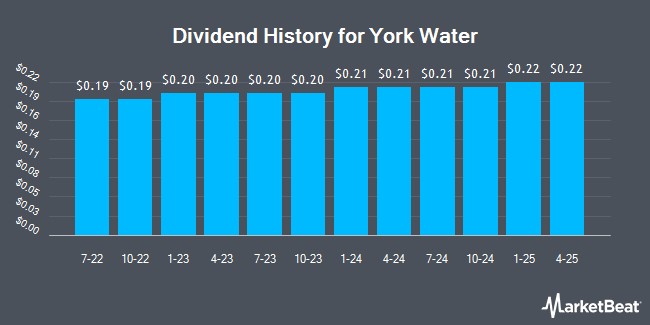 The York Water Company (NASDAQ:YORW - Get Free Report) announced a quarterly dividend on Tuesday, November 25th. Shareholders of record on Wednesday, December 31st will be paid a dividend of 0.228 per share by the utilities provider on Thursday, January 15th. This represents a c) dividend on an annualized basis and a yield of 2.8%. The ex-dividend date of this dividend is Wednesday, December 31st. This is a 4.0% increase from York Water's previous quarterly dividend of $0.22.