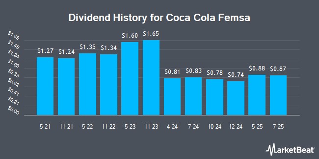Coca Cola Femsa S.A.B. de C.V. (NYSE:KOF - Get Free Report) announced a quarterly dividend on Tuesday, November 25th. Shareholders of record on Monday, December 8th will be given a dividend of 0.9979 per share on Friday, December 19th. This represents a c) dividend on an annualized basis and a yield of 4.5%. The ex-dividend date is Monday, December 8th.
