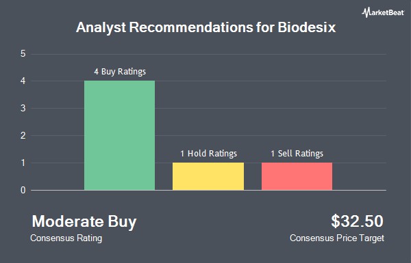 Shares of Biodesix, Inc. (NASDAQ:BDSX - Get Free Report) have earned an average recommendation of "Moderate Buy" from the six ratings firms that are currently covering the stock, Marketbeat.com reports. One analyst has rated the stock with a sell recommendation, one has given a hold recommendation and four have issued a buy recommendation on the company. The average twelve-month price objective among analysts that have issued ratings on the stock in the last year is $32.50.