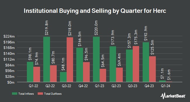 Several other institutional investors and hedge funds have also recently bought and sold shares of HRI. CWM LLC increased its stake in Herc by 114.4% in the first quarter. CWM LLC now owns 1,042 shares of the transportation company's stock valued at $140,000 after purchasing an additional 556 shares during the last quarter. Universal Beteiligungs und Servicegesellschaft mbH purchased a new stake in shares of Herc in the first quarter valued at $948,000. Zurcher Kantonalbank Zurich Cantonalbank increased its stake in shares of Herc by 8.7% during the 1st quarter. Zurcher Kantonalbank Zurich Cantonalbank now owns 7,912 shares of the transportation company's stock valued at $1,062,000 after acquiring an additional 634 shares during the last quarter. Meeder Asset Management Inc. purchased a new position in Herc in the first quarter valued at approximately $195,000. Finally, Vestcor Inc purchased a new position in shares of Herc in the first quarter valued at $271,000. 93.11% of the stock is owned by institutional investors and hedge funds.