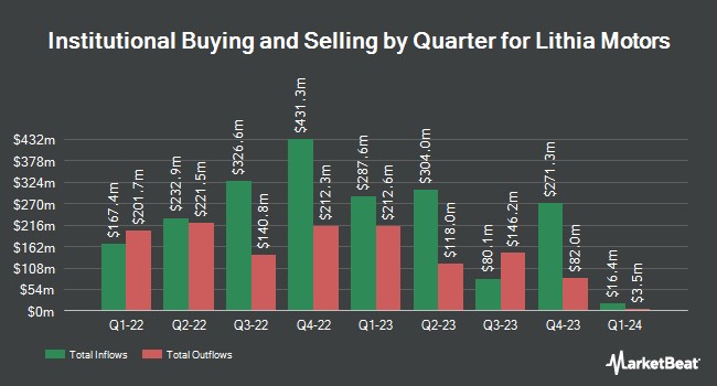 Other institutional investors and hedge funds also recently modified their holdings of the company. Bessemer Group Inc. increased its stake in shares of Lithia Motors by 114.6% during the 2nd quarter. Bessemer Group Inc. now owns 88 shares of the company's stock worth $29,000 after purchasing an additional 47 shares in the last quarter. Hantz Financial Services Inc. increased its position in Lithia Motors by 1,383.3% during the second quarter. Hantz Financial Services Inc. now owns 89 shares of the company's stock worth $30,000 after buying an additional 83 shares in the last quarter. Parallel Advisors LLC lifted its position in shares of Lithia Motors by 106.2% in the second quarter. Parallel Advisors LLC now owns 134 shares of the company's stock valued at $45,000 after acquiring an additional 69 shares in the last quarter. eCIO Inc. acquired a new stake in shares of Lithia Motors during the first quarter valued at $55,000. Finally, CWM LLC increased its position in Lithia Motors by 30.1% during the 1st quarter. CWM LLC now owns 212 shares of the company's stock worth $62,000 after purchasing an additional 49 shares in the last quarter.