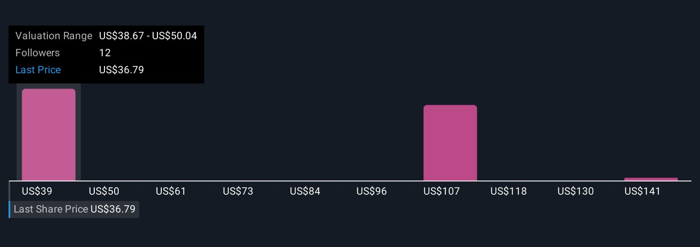 Six fair value estimates from the Simply Wall St Community range widely from US$40.29 to as high as US$152.39 per share. While adoption of AI-driven tools is highlighted as a catalyst, increasing competition and changes in digital auto retail could affect future revenue streams, consider exploring these differing viewpoints in detail.