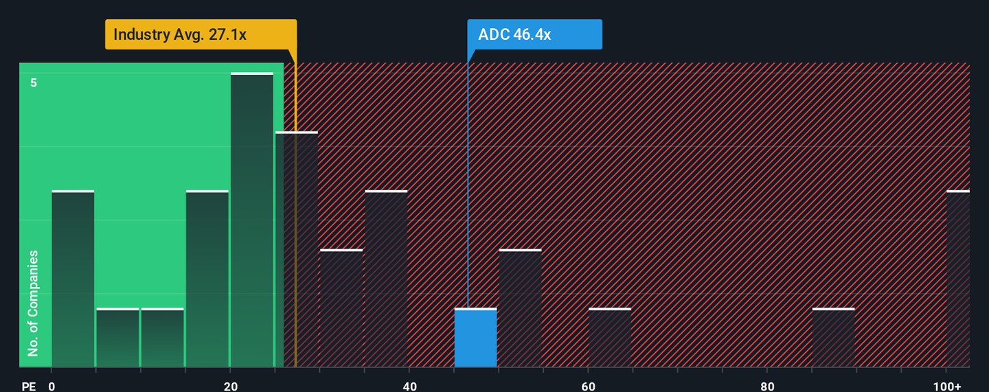 Agree Realty trades at a price-to-earnings ratio of 46.4x, which is far above both the US Retail REITs industry average of 27.1x and the peer average of 25.5x. This premium suggests investors are paying a steep price, especially as the fair ratio model points to a lower figure of 36.4x. Is the optimism overdone, or is there a hidden quality premium at play?