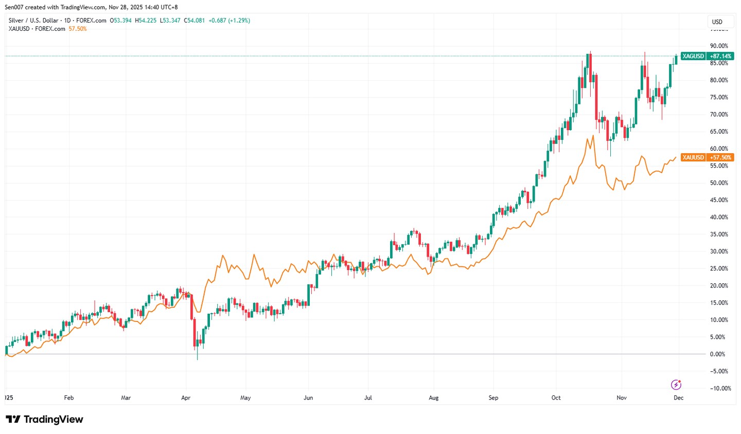 [Source: TradingView; Comparison of silver and gold price trends in 2025]