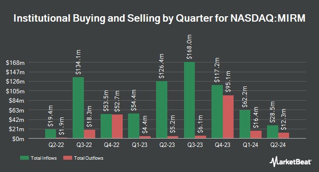 A number of other hedge funds also recently bought and sold shares of the company. CWM LLC increased its position in shares of Mirum Pharmaceuticals by 259.4% in the first quarter. CWM LLC now owns 593 shares of the company's stock worth $27,000 after acquiring an additional 428 shares in the last quarter. Comerica Bank boosted its stake in Mirum Pharmaceuticals by 45.1% in the 1st quarter. Comerica Bank now owns 895 shares of the company's stock worth $40,000 after purchasing an additional 278 shares during the period. Quarry LP purchased a new position in Mirum Pharmaceuticals during the 1st quarter worth approximately $56,000. Mirae Asset Global Investments Co. Ltd. grew its position in Mirum Pharmaceuticals by 14.9% during the 2nd quarter. Mirae Asset Global Investments Co. Ltd. now owns 1,914 shares of the company's stock worth $97,000 after purchasing an additional 248 shares in the last quarter. Finally, Avanza Fonder AB raised its stake in Mirum Pharmaceuticals by 44.3% during the 2nd quarter. Avanza Fonder AB now owns 4,154 shares of the company's stock valued at $211,000 after purchasing an additional 1,276 shares during the period.