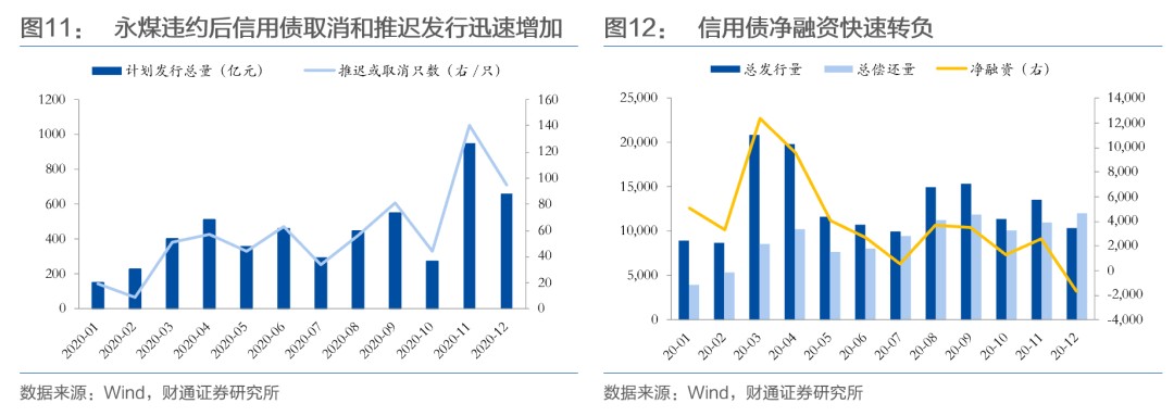 In the primary market, the amount of credit bonds canceled or postponed in issuance in the month of Yongmei's default reached 95.29 billion yuan, and the impact extended beyond the scope of Henan coal enterprises, with net financing of credit bonds rapidly turning negative.