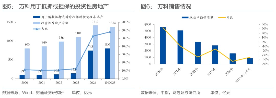 In addition, Vanke's asset disposal and sales situation are not optimistic. By mid-2025, the balance of investment properties used for pledges and guarantees has reached 80 billion yuan, accounting for 58.2% of the balance of investment properties, leaving fewer and fewer disposable assets. From January to October 2025, the sales amount based on equity was 86 billion yuan, a year-on-year decline of 34.4%, which is a significant drop. Considering the current regulatory funding situation in various regions, the funds actually recovered through sales are very limited.