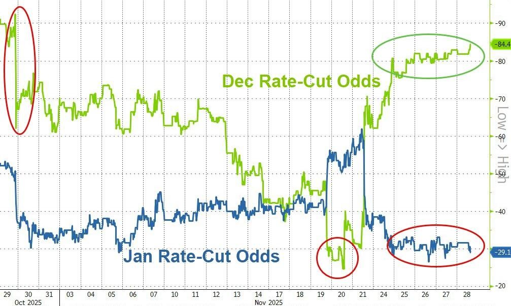Goldman Sachs FICC analysts Rikin Shah and Cosimo Codacci-Pisanelli pointed out in their report that the road to the December Federal Reserve meeting has been quite bumpy, but the final outcome is becoming clearer. Williams' remarks last Friday not only hinted at support for a rate cut within the committee but also directly prompted a correction in market pricing, bringing it back up to 21 basis points.