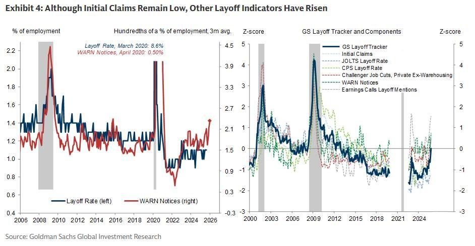 Additionally, various layoff tracking indicators are sending concerning signals. The number of layoffs mentioned in Challenger data, WARN notices, and third-quarter earnings call discussions has increased in recent months.