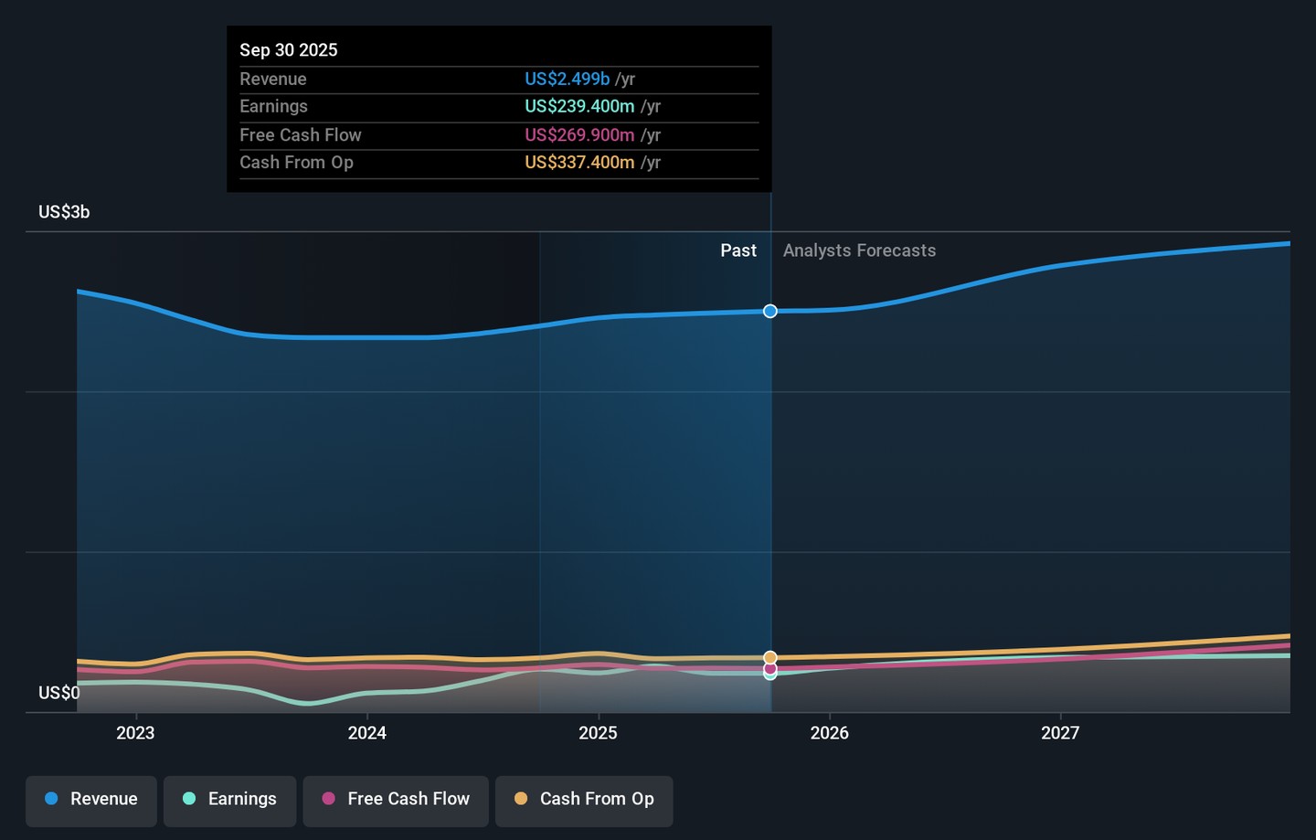 Element Solutions' narrative projects $2.8 billion revenue and $438.6 million earnings by 2028. This requires 3.9% yearly revenue growth and a $198.2 million earnings increase from $240.4 million currently.