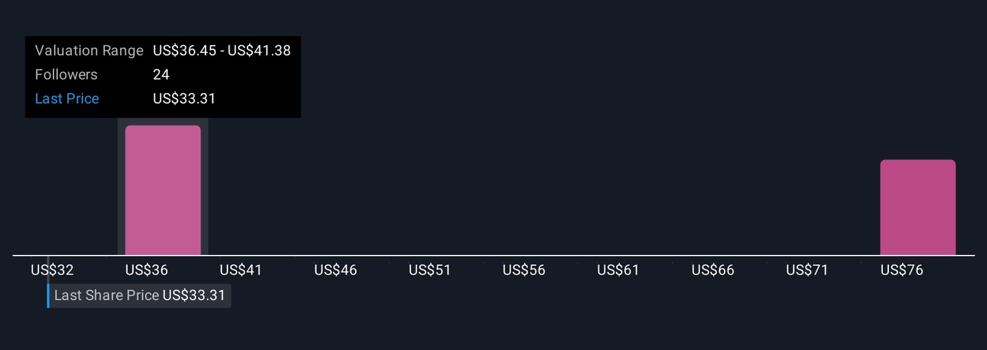 Fair value estimates from the Simply Wall St Community range from US$31.51 to US$80.87 across 5 member analyses. Many see opportunity tied to successful product innovation, while others flag persistent user and competition risks, offering readers several sharply different perspectives to consider.