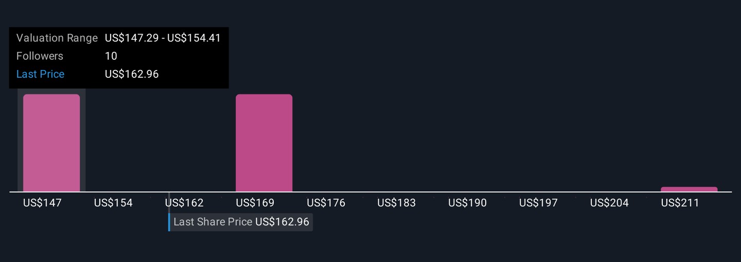 Retail investors in the Simply Wall St Community have posted three fair value estimates for CBRE ranging from US$143.30 to US$218.54 per share. With such wide-ranging forecasts, your view on near-term transaction volumes and economic headwinds could be especially important when comparing perspectives on the company’s prospects.