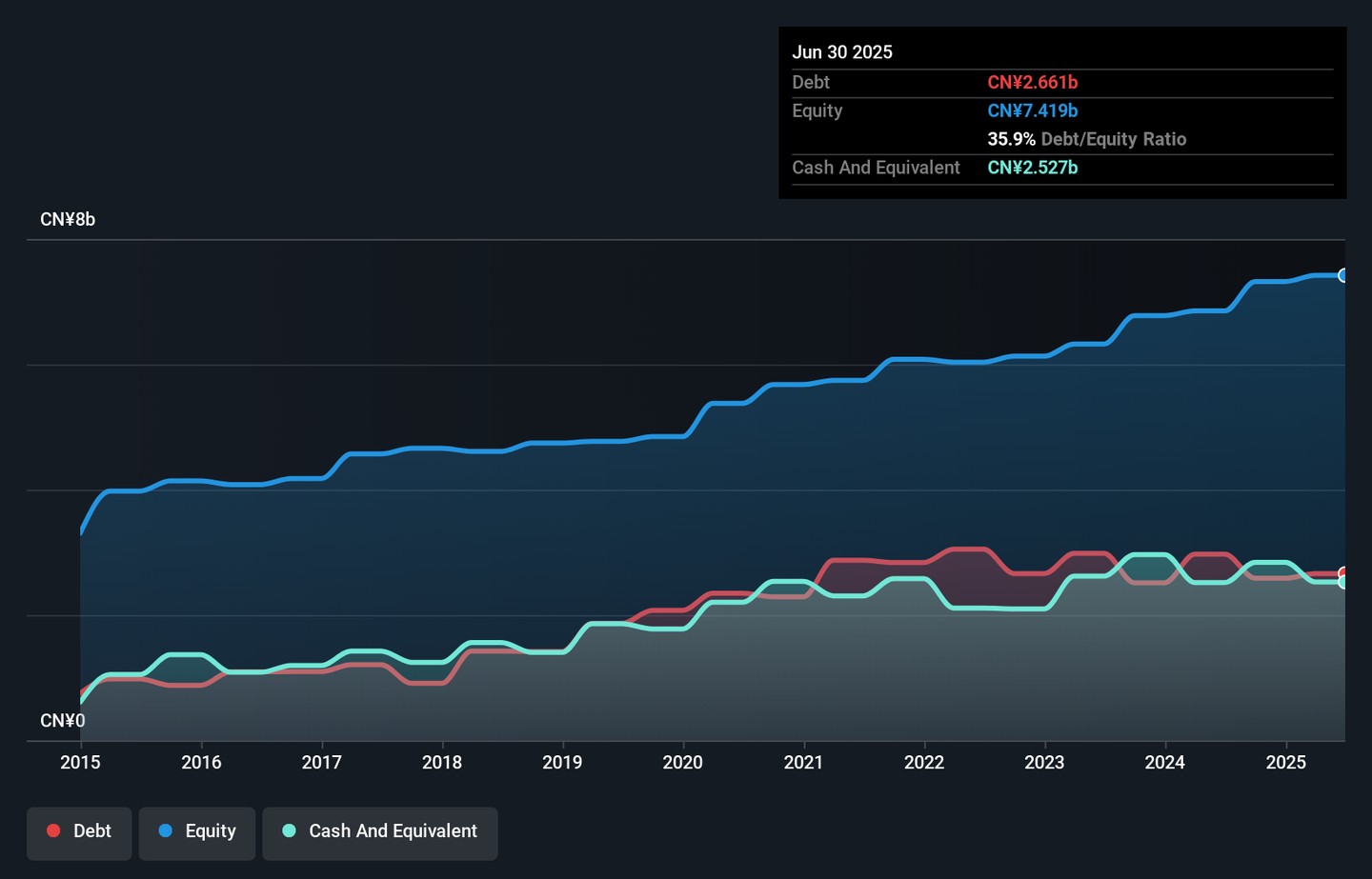 As you can see below, Wasion Holdings had CN¥2.66b of debt at June 2025, down from CN¥2.97b a year prior. However, it also had CN¥2.53b in cash, and so its net debt is CN¥134.1m.