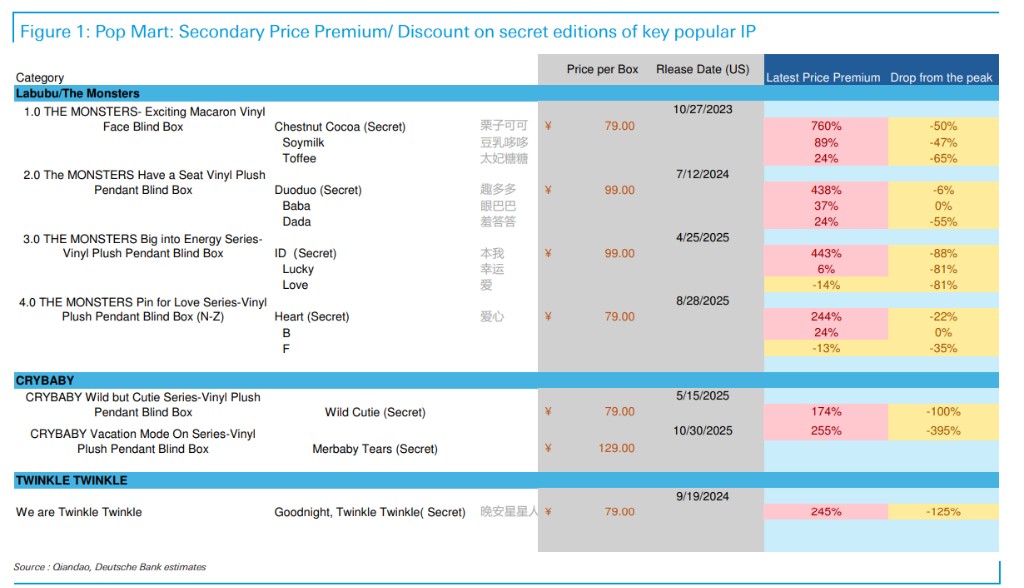 Premiums halved: The premium for the popular Labubu "hidden version" has shrunk by over 50%.