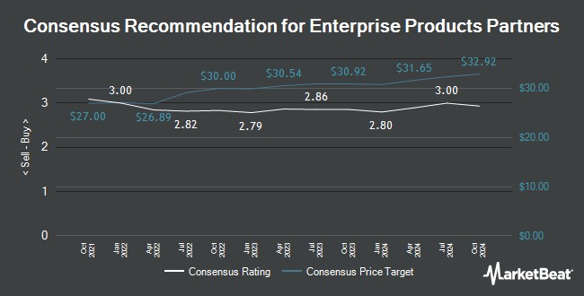 Enterprise Products Partners (NYSE:EPD - Get Free Report)'s stock had its "neutral" rating restated by equities researchers at JPMorgan Chase & Co. in a note issued to investors on Monday, Marketbeat Ratings reports. They currently have a $35.00 price target on the oil and gas producer's stock. JPMorgan Chase & Co.'s target price would indicate a potential upside of 6.94% from the company's current price.