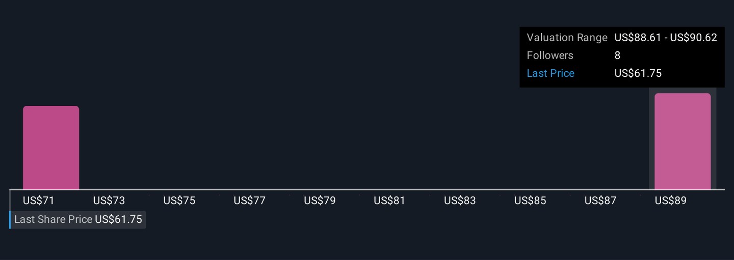 Simply Wall St Community members set fair values between US$70.56 and US$90.62 from just 2 analyses before the latest quarterly results. Views on new multifamily supply and rental concessions continue to weigh heavily, prompting you to review several investor perspectives.