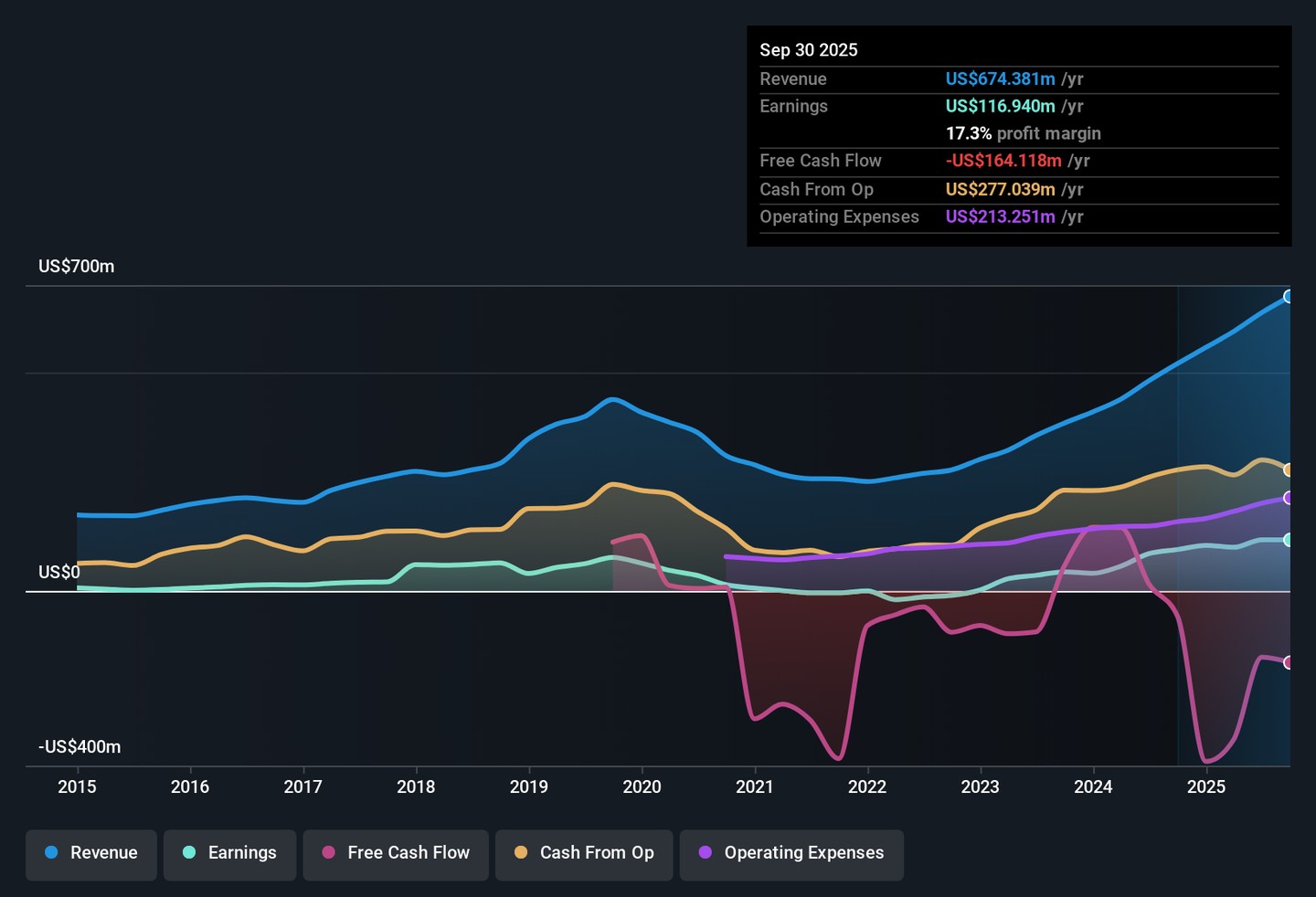 Top-line growth is a great indicator that growth is sustainable, and combined with a high earnings before interest and taxation (EBIT) margin, it's a great way for a company to maintain a competitive advantage in the market. It's noted that Willis Lease Finance's revenue from operations was lower than its revenue in the last twelve months, so that could distort our analysis of its margins. On the revenue front, Willis Lease Finance has done well over the past year, growing revenue by 30% to US$674m but EBIT margin figures were less stellar, seeing a decline over the last 12 months. If EBIT margins are able to stay balanced and this revenue growth continues, then we should see brighter days ahead.