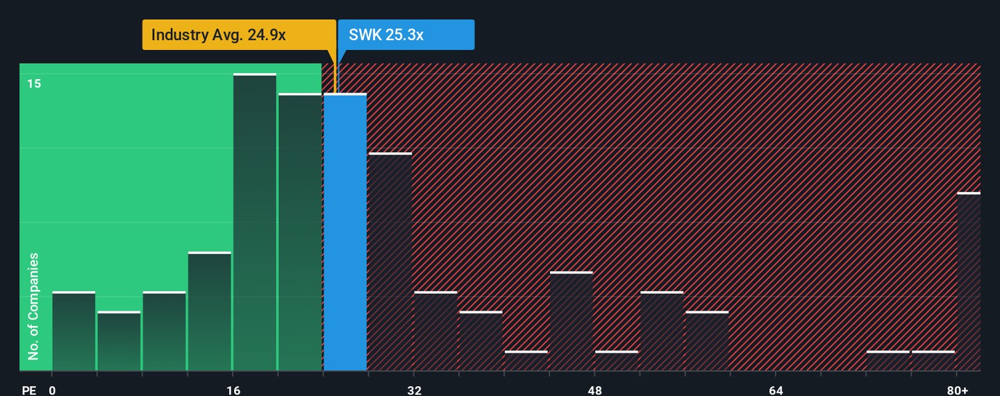 While the popular narrative points to Stanley Black & Decker being undervalued, a quick look at its price-to-earnings ratio sends a more cautious signal. The current P/E ratio of 25.3x is higher than the US Machinery industry average of 24.9x, suggesting the stock is not inexpensive on this metric. However, compared to similar peers at 26.2x and a fair ratio target of 46.9x, the shares appear less risky than they might initially seem. Are investors right to trust this multiple or is the true value found elsewhere?