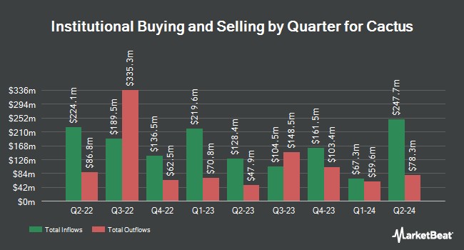 Other institutional investors have also recently added to or reduced their stakes in the company. TD Asset Management Inc lifted its stake in shares of Cactus by 38.5% during the first quarter. TD Asset Management Inc now owns 42,942 shares of the company's stock worth $1,968,000 after purchasing an additional 11,942 shares in the last quarter. Mackenzie Financial Corp lifted its position in Cactus by 26.7% during the 1st quarter. Mackenzie Financial Corp now owns 11,705 shares of the company's stock worth $536,000 after acquiring an additional 2,468 shares in the last quarter. Jupiter Asset Management Ltd. acquired a new position in Cactus during the 1st quarter worth approximately $852,000. Aigen Investment Management LP purchased a new position in Cactus in the 1st quarter worth approximately $376,000. Finally, Nuveen LLC acquired a new stake in Cactus in the first quarter valued at approximately $11,494,000. 85.11% of the stock is owned by hedge funds and other institutional investors.