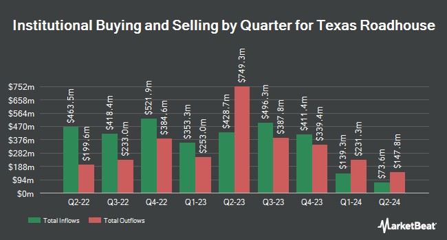Several other hedge funds and other institutional investors have also made changes to their positions in the stock. Axiom Investors LLC DE grew its position in shares of Texas Roadhouse by 3,696.7% in the 1st quarter. Axiom Investors LLC DE now owns 2,173,807 shares of the restaurant operator's stock valued at $362,221,000 after purchasing an additional 2,116,552 shares during the period. Roundview Capital LLC acquired a new stake in Texas Roadhouse during the 2nd quarter worth approximately $1,482,000. Commonwealth of Pennsylvania Public School Empls Retrmt SYS lifted its stake in Texas Roadhouse by 2,515.2% in the second quarter. Commonwealth of Pennsylvania Public School Empls Retrmt SYS now owns 417,045 shares of the restaurant operator's stock valued at $78,158,000 after buying an additional 401,098 shares in the last quarter. Symphony Financial Ltd. Co. acquired a new position in shares of Texas Roadhouse in the second quarter valued at approximately $28,465,000. Finally, NorthRock Partners LLC acquired a new position in shares of Texas Roadhouse in the second quarter valued at approximately $276,000. 94.82% of the stock is currently owned by institutional investors.