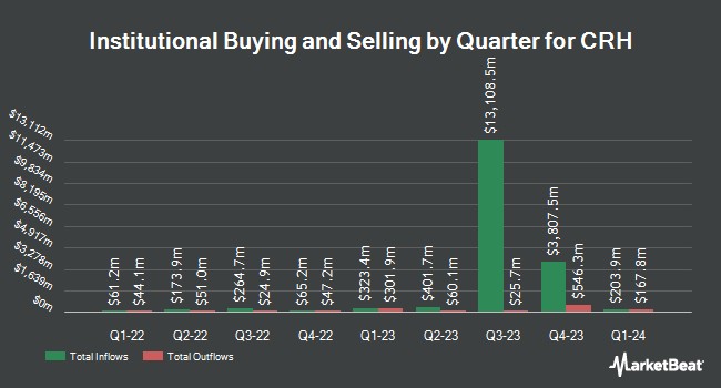 Several other hedge funds have also recently bought and sold shares of the business. Vanguard Group Inc. raised its stake in CRH by 1.0% during the 2nd quarter. Vanguard Group Inc. now owns 64,405,066 shares of the construction company's stock valued at $5,912,385,000 after purchasing an additional 649,598 shares during the last quarter. Massachusetts Financial Services Co. MA increased its stake in shares of CRH by 24.3% in the second quarter. Massachusetts Financial Services Co. MA now owns 12,803,346 shares of the construction company's stock valued at $1,175,347,000 after buying an additional 2,499,558 shares in the last quarter. Norges Bank bought a new position in shares of CRH in the second quarter worth about $1,007,932,000. Boston Partners raised its position in shares of CRH by 9.4% during the second quarter. Boston Partners now owns 9,654,828 shares of the construction company's stock worth $888,810,000 after acquiring an additional 832,027 shares during the last quarter. Finally, Bank of New York Mellon Corp grew its holdings in CRH by 4.0% during the 2nd quarter. Bank of New York Mellon Corp now owns 9,185,200 shares of the construction company's stock worth $843,201,000 after acquiring an additional 354,711 shares during the period. 62.50% of the stock is owned by institutional investors and hedge funds.